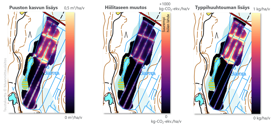 Paikkatietoon pohjautuvaa menetelmää voidaan hyödyntää esimerkiksi siten, että jo suometsien hoitohankkeen suunnittelun alussa suunnittelija saa kokonaiskäsityksen alueella taloudellisesti kannattavista toimenpiteistä sekä ojien perkaustarpeesta. Tavoitteena on välttää turhia kunnostusojituksia ja liian syviä ojia, ja hillitä siten suometsien hiilipäästöjä ja vähentää vesistökuormitusta.