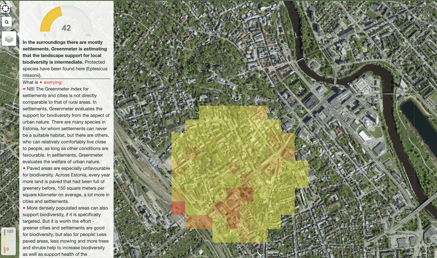 Virossa ongelmaan on jo herätty ja esim. Tarton yliopiston kehittämästä Greenmeter-työkalusta voi tarkistaa suoraan verkossa eri puolella Viroa olevien maa-aluiden biodiversiteetin tilaa ja verrata sitä muihin alueisiin.