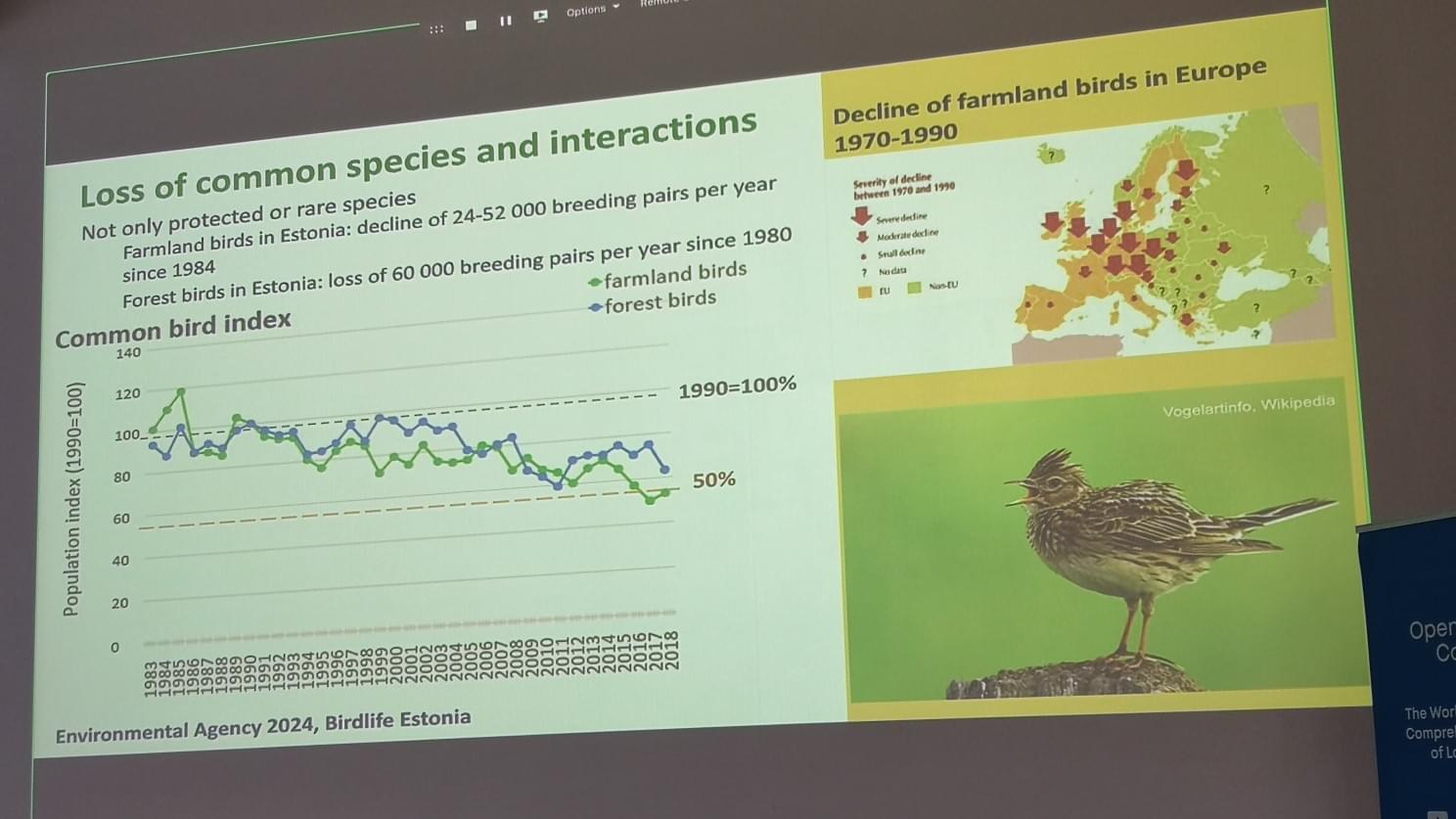 Tarton yliopiston Aveliina Helm vastaavasti korosti omassa esityksessään luonnon biodiversiteetin merkitystä Euroopassa sekä sitä, ettei varsinaista positiivista kehitystä ole asian kannalta juuri nähty.