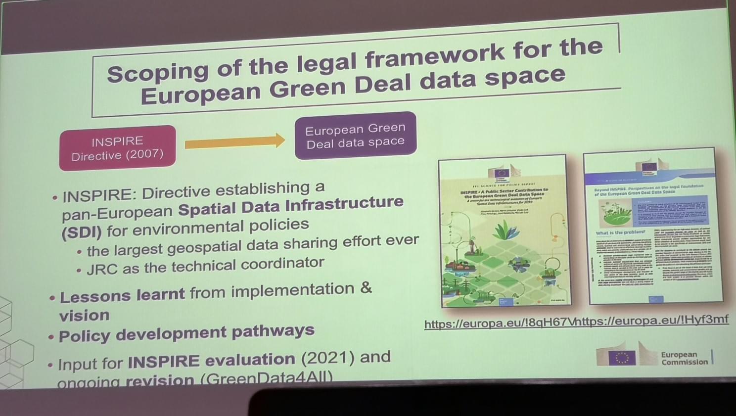 INSPIRE-direktiivin merkitystä ympäristödatan data-avaruuden luomiselle on nostettu esiin myös Euroopan komission yhteisen tiedekeskuksen (JRC), vuoden 2021 julkaisussa INSPIRE – A Public Sector Contribution to the European Green Deal Data Space. OGC tapahtumassa raporttia esitteli yksi sen kirjoittajista, Marco Minghini.