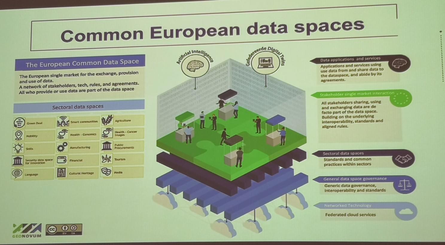 Osin näistä uusista vaatimuksista esiin noussut keskustelu paikkatietoalalla on peittänyt alleen myös laajemmat tavoitteet, mitä EU:lla on mm. avoimen ympäristödata osalta. EU:n tasolla yhteiset data-avaruudet on konsepti, joka esiteltiin juuri toimikautensa päättävän komission toimikauden alussa vuonna 2020 julkaistussa EU:n yhteisessä datastrategiassa.