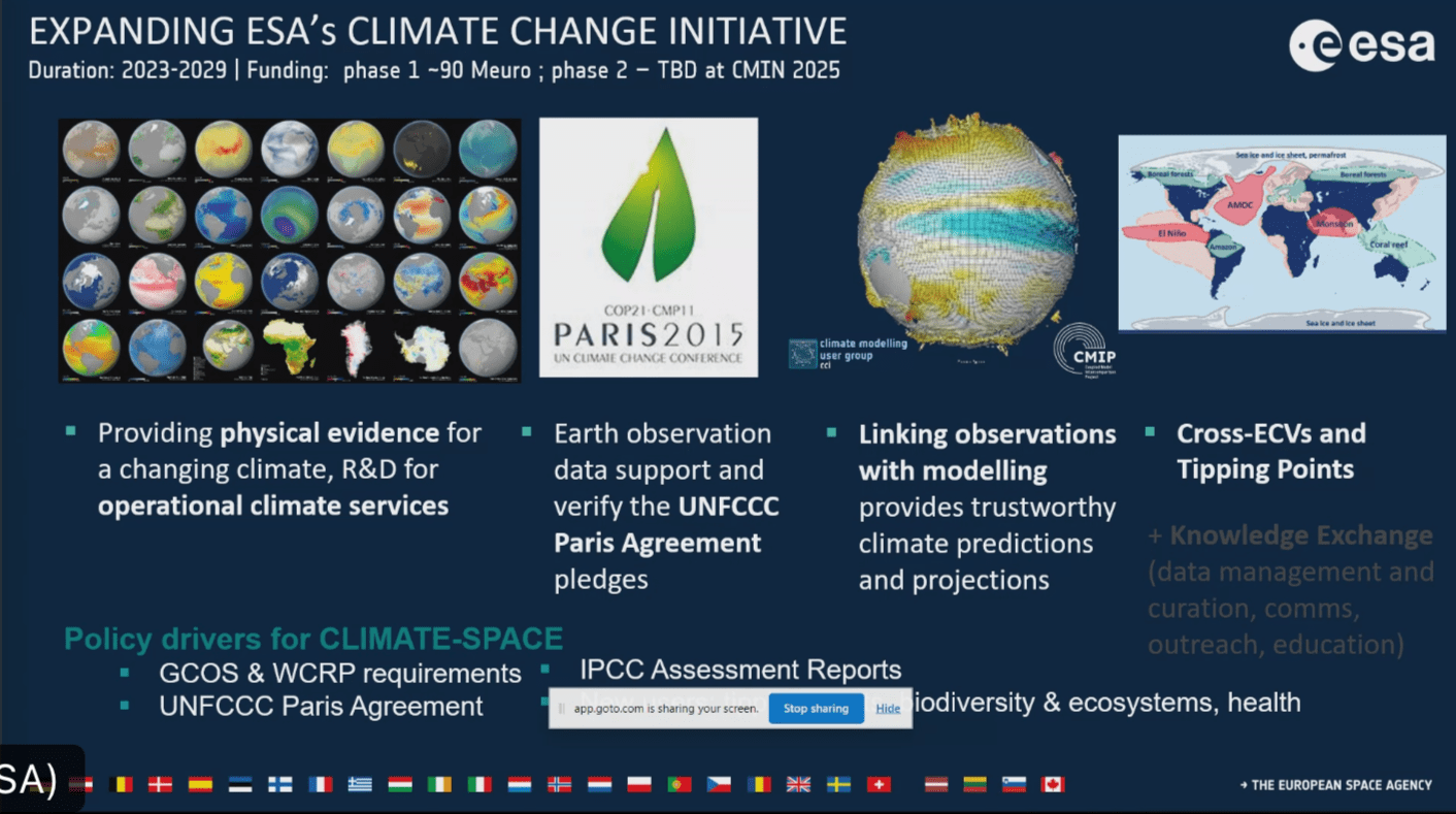 Kyseessä on laaja ohjelma, joka osaltaan ohjaa myös Euroopan avaruusohjelman tulevia tavoitteita. Lyhyenä introna aiheeseen toimii alla oleva kuva ja lisää tietoa aiheesta löytyy ESA:n ilmastosivuilta.