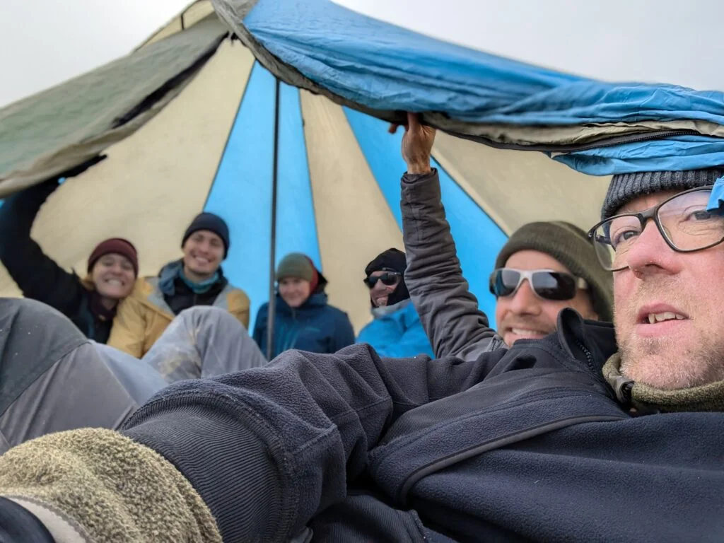 Edellinen matka vuonna 2019 Axel Heibergin saarelle oli poikkeuksellinen korkeiden lämpötilojen takia. Eurekassa (79,9889N, 85,94090W) mitattiin tuolloin yli 20 asteen ennätyslämpötiloja. Teltassa pärjäsi nukkua aika vähällä vaatetuksella. Tällä reissulla taasen satoi poikkeuksellisen paljon, joten vaatteiden kuivattelu pääsi osaksi päivärutiineita – kengät ja hanskat saa hyvin kuivaksi generaattorin pakoputken eteen asetetussa pakkilaatikossa ja housut ja paidat lämpimän laatikon päällä! Ja sitä mutaa sitten riitti ja mönkijöitä kaivettiin ja kiskottiin kuiville tuon tuosta.