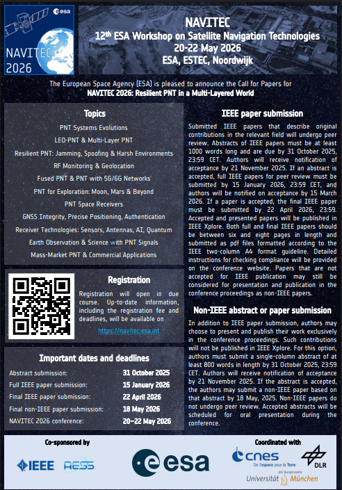 NAVITEC 2026+ Add to Google Calendar+ iCal / Outlook export Date20. - 22.05.2026 Time Koko päivä Järjestäjä ESAShare this event